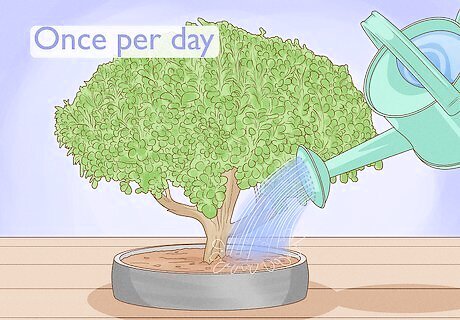 Water the tree lightly once per day. You should only water deeply immediately after pruning. Then, water the tree lightly each day. Aim to keep the soil moist, but not soggy. Oversaturating the soil could lead to root rot, so take care not to water the tree too much.