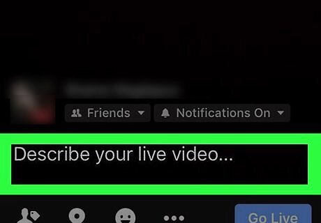 Add a description to your live video. Tap the text box at the bottom of the screen and then type in your description. While this is optional, you won't be able to add text to the post after you publish it.