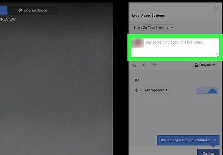 Add a description to the live video. Click the text box on the right side of the page and type in your video's description. While this is optional, just remember that you can't add a description after the video ends.