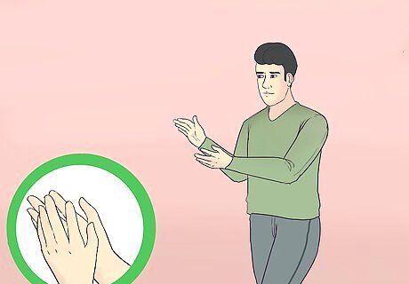 Experiment with the room's sound by clapping. Walk around the room, clapping your hands. The sound quality you hear will change depending on where you stand. Pick a spot that offers the sound quality you need and note any spots you would like to alter before recording. For example, being near glass may cause your drums to rattle or sound too high-pitched. Move your drums to a different spot. All rooms sound a little different, so you may have to switch rooms to get the sound quality you want.