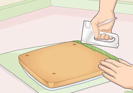 Remove the old cover by removing the staples if you’d like. You can remove the old fabric or simply cover it with your new fabric. Remove all of the staples with a flathead screwdriver or staple remover. Slide your screwdriver under the staple and move the handle up to pop each staple off. If you’re using a staple remover, wrap the jaws around each staple and pull it off. Pry every staple out and pull the fabric cover up to remove it. If you notice that the interior cushion is made out of loose stuffing, consider simply covering over the old fabric to make things easier. If you do want to replace the stuffing, buy a foam pad for a cushion online or at a local craft store. You can also buy loose cotton stuffing and pat it down while you wrap the fabric around it. You can use a staple removing tool if you prefer, but the staples that go into cushions tend to be a little too strong for a standard staple remover. You don’t need to remove the old cover if you don’t want to. You can always add a new layer of fabric on top of your old cushion.