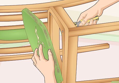 Disassemble the chair to remove the seat and make things easier. Flip the chair over to see how the cushion is attached to the seat. If the cushion is stapled into the frame, use a flathead screwdriver to pry the staples out of the wood. If the seat is screwed into place, grab a Philips or flathead screwdriver and remove the screws by turning them counterclockwise. Then, lift the seat off of the frame.