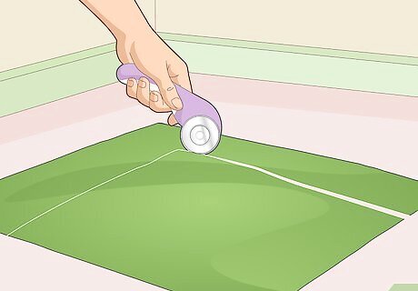 Trace your new cover out on your new fabric. Take the dimensions for your cushion and transfer them on to the new fabric. Sketch your cushion out as a single square or rectangle to minimize the number of cuts you need to make. Use a fabric marker or fabric chalk to sketch the dimensions where you’re going to cut the cushion out. You can use a permanent marker if you don’t have a fabric marker. You’re going to tuck the edges under the seat so nobody should see any excess marks you make. If your new fabric has a pattern, make sure that the pattern lines up with the edges so that it looks even and direction that you want. For circular cushions, place the cushion in the center of your fabric, then, trace around the outside of the seat, leaving an extra 4–8 in (10–20 cm) on each side.