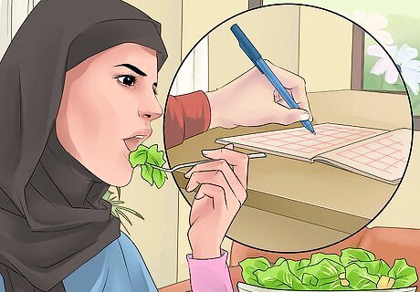 Keep a food diary. Keeping track of what you eat and behaviors that accompany eating will help you become more mindful of your eating habits. This will further help you to make healthy changes to your eating behavior. In addition to tracking what and how much you eat, also include information about your mood, whether you eat alone or with others, what other activities you engage in while you eat, time and location. This will give you insight into complex eating behaviors. Create a grid with column labels to make sure you include as much behavioral information as possible.