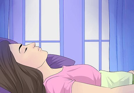 Get quality sleep. Sleep disturbances may be related to eating disorders, particularly those involving binge behavior. Some chemicals that affect appetite also play a significant role in regulating sleep. Developing a regular sleep pattern may help to regulate hormones and other chemicals that affect appetite. Create sleep rituals to condition yourself to develop a healthy sleep pattern. Set a bedtime and prepare for bed the same way every night. Over time, this may help you to feel sleepy when you begin your bedtime routine. Avoid daytime napping. Napping will likely make falling asleep at night more difficult. If you feel tired during the day, try to push through your sleepiness until a reasonable bedtime.