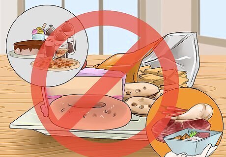 Get rid of unhealthy food around the house. Do not stock your pantry with junk and ready-to-eat foods. These foods are usually unbalanced and very high in calories, carbohydrates and sugars. Make a conscious effort fill your kitchen with healthy eating options. Prepare your own food and eat fresh. If you have to prepare your food, it will require a conscious decision to make a meal instead of just grabbing a bag of cookies or pint of ice cream and eating without thinking. Be sure to throw out junk foods from secret stashes.