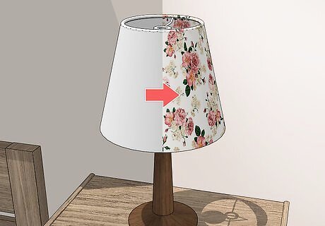 Cover your lampshades with new fabric. Choose a thin, light-colored fabric so you still get some light through it. Measure out the fabric and wrap it around the lamp. Use sewing glue to hold it in place, and tuck the edges under to form "seams." Cut the extra fabric off at the top and bottom and glue it over the edge on the inside.