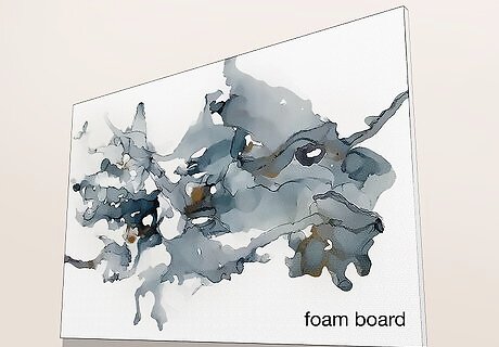 Create your own abstract art on foam board. You can pick up poster-sized foam board from the dollar store or another cheap store. Then, create your own art! Add blocks of color across the board at a diagonal, paint stripes, or simply let your imagination guide you! Once you're done, hang it on the wall with double-sided tape or adhesive strips. Another option is try concentric circles or squares or paint your own sunset.