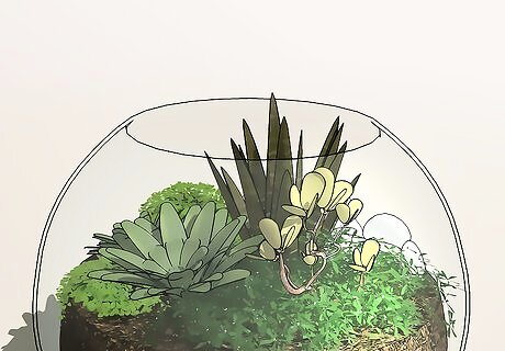 Put a few small plants in a sunny corner. Live plants really liven up a room, and they're fairly inexpensive. All you need is a container with a drainage hole in it, some soil, and the plant. Try some small succulents, small ferns, or ivy, for instance. You can use many things as containers, including teacups, mugs, spray painted food cans, or small glass jars. Just be sure to drill some holes in the bottom for drainage. Another option is to get a pretty vase and add some fake flowers. That way, you don't have to water them!