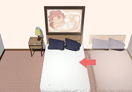 Move your bed to shake up the room. Your bed is typically a big piece in your room, so moving it can make a big impact. If your bed is off to one side, try putting it in the center of the wall, or vice versa. Then, when you add new linens and decorations, it will really stand out and make your room feel cheerful and comfortable.