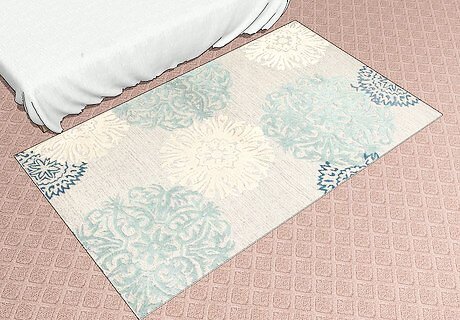 Pop a new, small rug on the floor to update the look. Whether you have worn-out carpet or hardwood floors, you can make them look new with a rug on top. Rugs can get expensive, so try going to a discount store and opting for a small rug. Even a tiny one can jazz up your floor! Place it along one side of your bed so it acts as a floor mat or throw it in the center of the room to add pizzazz to a larger area.