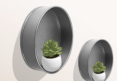 Create a shelf or a tray out of a cheap springform pan. You can likely find one of these at the dollar store. Turn it on its side and hang it on the wall. Put something small inside like a succulent for a cute little display! You can even spray paint it for some more pizzazz or add a small string of battery-powered lights. You can do something similar with other cheap baking trays. Spray paint a rectangular baking pan to use as a place to gather odds and ends on your dresser, for instance!