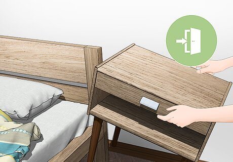 Update your furniture with paint or new hardware. When painting, unscrew the handles and take out any drawers. Fill in any holes or scratches with wood putty, and then sand the surface down with 150-grit sandpaper so it accepts paint. Use a paintbrush to apply your new paint; opt for indoor acrylic paint or latex paint. You may need to apply more than one coat for an even finish. For a smoother surface, apply primer first. Always work in a ventilated area. You can even try spray painting your furniture! When spray painting, make sure to hold the can at least 6 inches (15 cm) from the work surface and keep it continually moving to get an even coat. You can also buy new handles for your dressers and other furniture. The hardware store sells these pretty cheaply, or you can look online.