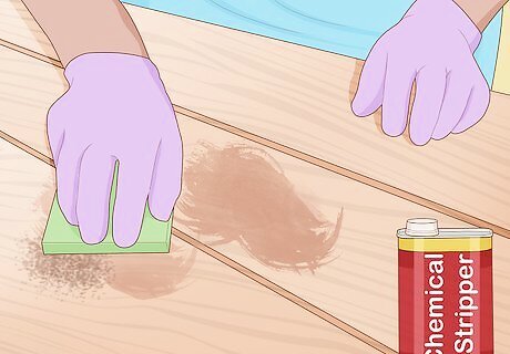 Get rid of stubborn paint and stain using a chemical stripper. If you're having trouble removing the dresser's current finish, try applying a chemical stripping agent to the surface. For paint, use a paint stripper from companies like Smart Strip or Klean-Strip. For stains, use a methylene chloride-based stripping agent from companies like BEHR. To avoid damaging yourself or the dresser, read and follow your stripping agent's official safety warnings and application instructions. Chemical stripping agents are difficult to control and can potentially damage your dresser, so use them as a last resort.