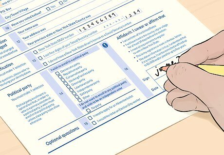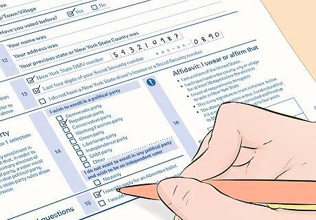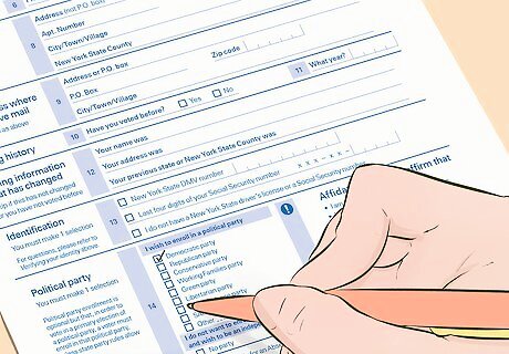Choose a political party. The written form allows you the option of choosing a political party. New York recognizes 8 political parties, including the Republicans and Democrats. If you would like to register with one of these parties, check the box next to its name. Otherwise, check “No party” and you’ll be registered as an independent voter. Choosing a political party is entirely optional. But keep in mind that if you don’t have an affiliated party, you cannot vote in primary elections. For example, if you’re unaffiliated but decide you want to vote in the Democratic primary, you’ll have to re-register as a Democrat. Remember that if you register with one party, you aren’t obligated in any way to vote for that party. You’re still free to vote however you want.