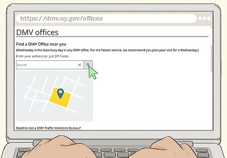 Locate your local Department of Motor Vehicles office. The most common voter registration place is the DMV. You can type in your zip code to find the nearest DMV to your home by visiting https://dmv.ny.gov/offices. DMV offices are sometimes crowded. It would help for you to call ahead and find out the best time to come in. You may even be able to schedule an appointment to submit your paperwork, making the process even faster.