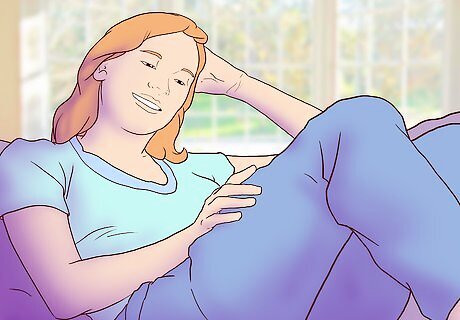 Sit down and make sure you're comfy. If you're sitting in an uncomfortable area, try sitting on your jacket. You might find it more comfortable to lean against a wall.