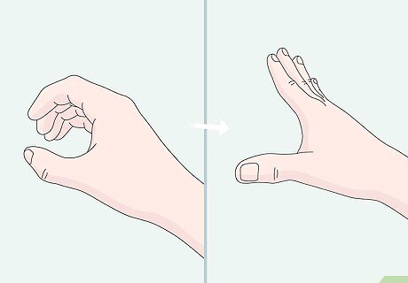 Curve your hand to stretch it into a 'C' or 'O' shape. Starting with your fingers stretched out, pretend as if you're about to grab something and move your hand into a 'C' shape. Once you've mastered this, continue moving your fingers together to create an 'O'. Release your fingers to relax them before doing this exercise again. Repeat the stretches for both hands. Do each shape 3-4 times for each hand.