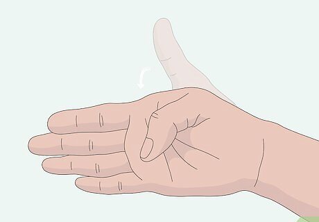Stretch your thumb by bending it into your palm. Relax your hand so that your palm is facing you. Bend your finger in towards your palm, trying to get it to touch. Once you've bent it as far as possible, stretch it back outwards slowly. Repeat this exercise several times for both hands. If your thumb can't reach your palm completely, just stretch it inwards as far as it will comfortably go.