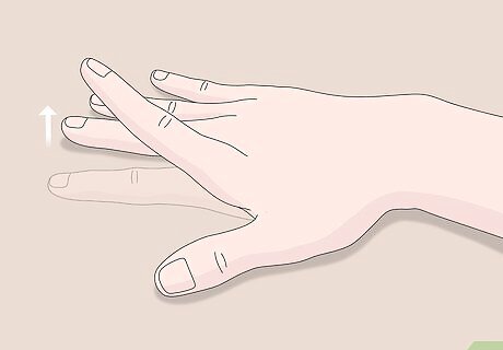 Practice lifting your fingers to strengthen and stretch them. Place your hand flat on a table or stable surface so your palm is facing down. Slowly lift up one finger at a time, focusing on lifting it as far up as you can while keeping the other fingers and your palm on the table. Do this with each finger on each hand, slowly lowering them back down once they've been lifted. Try to lift each finger 2-3 times per hand.
