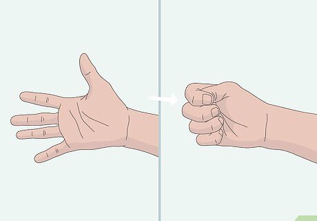 Make a fist with your hand to flex your hand muscles. Start by stretching out your fingers so your hand is straight. Bend your fingers in towards your palm, creating a fist. Instead of squeezing once your fingers are bent inwards, slowly expand your fingers back out so they're straight again. Do this several times for both hands. Avoid creating too tight of a fist by squeezing your fingers, as this isn't a necessary part of the stretch and could increase your hand pain. An alternative to this exercise is to gently squeeze a stress ball.