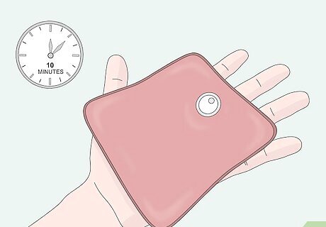 Use a heat compress for 10 minutes to soothe aches in your hand. Apply a heat compress, such as a warm washcloth or heated pad, to your hand and hold it there for 10-15 minutes. Dipping your hand in warm water is also a good way to help reduce any pain you’re feeling, stretching your fingers gently in the water to help strengthen them and prevent stiffness. Heat compresses work well for arthritis. Try soothing your hands when you’re washing the dishes, flexing your hands and fingers under the hot water to help reduce any pain. Use warm water with a temperature between 92–100 °F (33–38 °C).