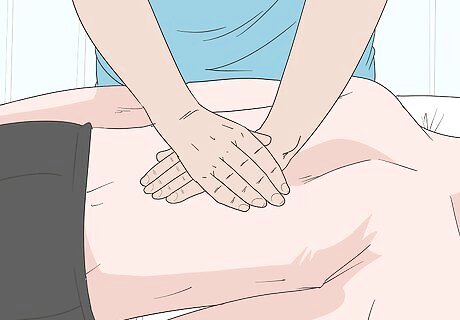 Get a massage for short-term pain relief. Once your herniated disc has started to improve, getting a back massage can help alleviate pain. Getting a massage while your pain is severe, however, could put more pressure on your vertebrae, so make sure you wait until your pain is minimal. When looking for a massage therapist, focus on professionals who offer medical and sports massages. They will likely have more experience and credentials with spinal issues, and will know how to avoid causing further pain.
