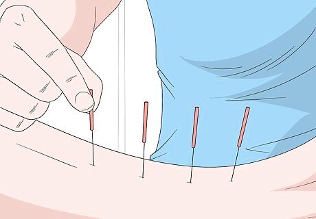 Try acupuncture if your herniated disc pain is minor. Getting acupuncture may be able to ease minor pain due to a herniated disc and relieve some inflammation as well. However, results vary greatly from one person to the next, so acupuncture may or may not be able to relieve your herniated disc pain. Reading reviews online is a great way to make sure that your acupuncturist is experienced and will know how to try to help relieve your herniated disc pain.
