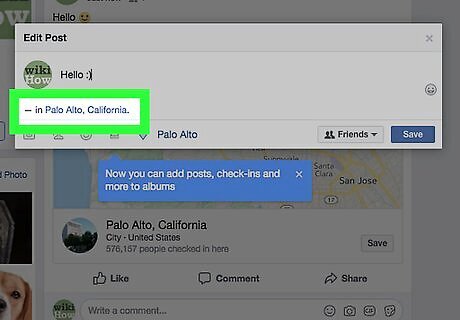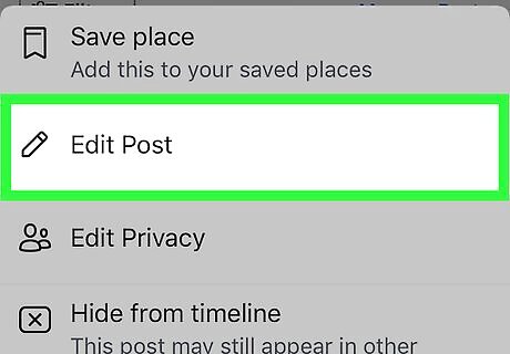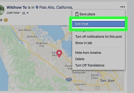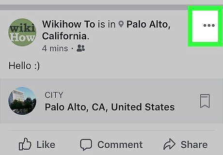 Click ⋯ for a post or Edit for a photo. It's to the right of the post or photo from which you want to remove the location. If you didn't create the post with the location, you can instead click ⋯, click Remove Tag in the drop-down menu, and click OK when prompted. For a photo post that you didn't create, you'll click Allowed on timeline and then click Hidden from timeline in the resulting drop-down menu.