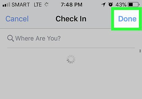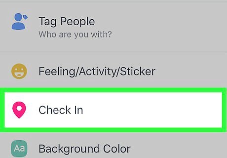Tap Check In. You'll find this option near the bottom of the window. You may have to scroll down to see Check In. On Android, you may have to tap the pink "Check In" icon in the lower-right side of the Edit window.