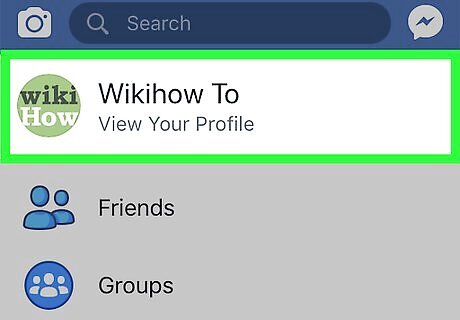 Tap your name. You'll see it at the top of the menu. Doing so takes you to your Facebook profile page.