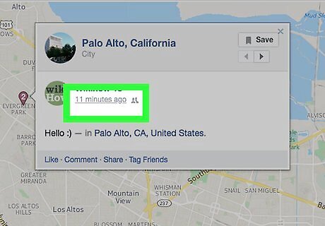 Click the Check-In post's date. You'll see the date below your name near the top of the pop-up window. This will take you to the post. You can scroll through different posts in your selected location by clicking ► in the upper-right side of the pop-up window.