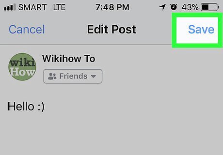 Tap Save. This is in the top-right corner of the screen. Doing so will save your post and remove the location from it.