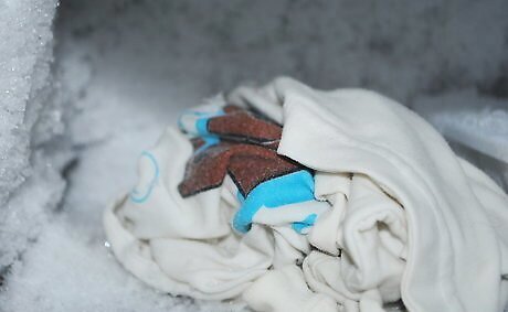 Wash as usual. Yes, wash a piece of frozen clothing! Wash it on its own. The liquid stain should come out.
