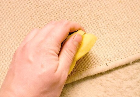 Rinse the stain. Lift the cloth off of the carpet, and spray warm water onto the stain. Alternatively, you may moisten a clean sponge with warm water and gently dab the stain.