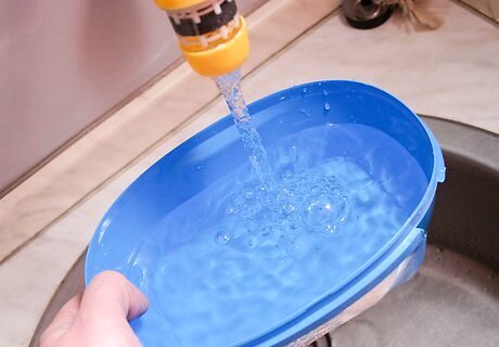 Prepare the cleaning solution. Add ¼ teaspoon mild, non-bleaching detergent or carpet shampoo to 1 liter (0.3 US gal) of cold water. Stir the solution in a bowl to mix thoroughly.