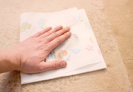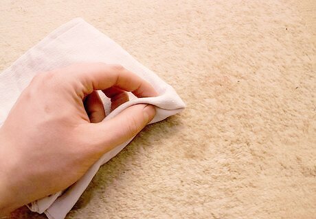 Dry the carpet. Place a clean, dry dishtowel or sturdy paper towels over the damp spot. Place a plastic bag over them, and then place a heavy object, such as a large book, over the bag. Wait several hours or overnight before removing the towels. The stain should be gone and, because the drying process lifts even deep stains out, it won't reappear.