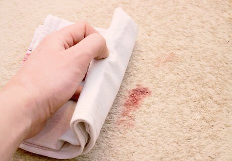 Blot the stain and apply more cleaning solution. Blot the stain gently with a paper towel and apply the solution again as in the previous two steps. Keep reapplying and blotting until no trace of the stain is evident on the towel when you blot.
