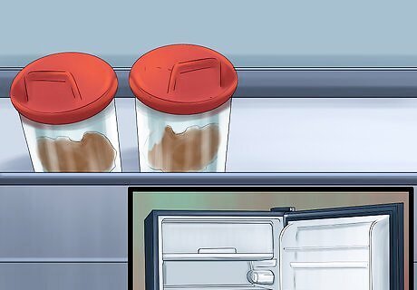 Refrigerate stool overnight in a sealed bag. If you cannot get a stool sample from your cat on the same day as your vet appointment, you can take a sample the night before. Use gloves to pick the stool out of your cat's litter box. Then, place it in a sealed plastic bag and refrigerate it. Make sure you do not put the stool sample next to any open food containers or fresh foods. If you want to be extra careful, double bag the stool sample and put it on its own shelf in the refrigerator. Make sure you label the bag “stool sample for vet” so anyone who finds it in the refrigerator knows what it is.