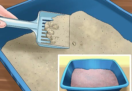 Change your cat's litter box frequently. If you have multiple cats, they can get parasites from each other in the litter box if it's not cleaned regularly. Do a weekly cleaning of your cat's litter box and replace the litter often. Remove any stool in their litter as soon as you can and dispose of it. Always wear gloves when touching your cat's stool. Pay attention to how often your cat uses its litter box. Often, if the litter box becomes too dirty, cats may be less likely to use it. It may be time to clean the litter box if your cat is not using it often.