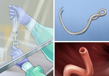 Let the vet test the sample. Once you have transported the sample to the vet, allow the vet to take the sample for testing. Your vet may do a direct smear, where they smear some of the sample on a glass slide and examine it in a microscope. They may also do a flotation test, where they float the sample in a solution to determine if there are parasites present. Your vet may be able to do the testing in their office in a matter of a few minutes. Sometimes, samples need to be sent to a laboratory for more elaborate screening for parasites. This could take days to weeks.
