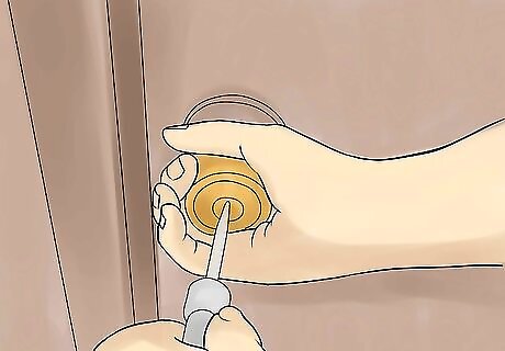 If there is no portion of the key protruding from the lock to grab with pliers, use a straight blade screwdriver (or anything with a blade small enough), inserted or pressed into the keyhole. Press or pull on the doorknob with the one hand so that there is as little pressure as possible on the lock's bolt. Twist the screwdriver to operate the lock much the same way as if the key were attached to the end of the screwdriver, to open or unlock.