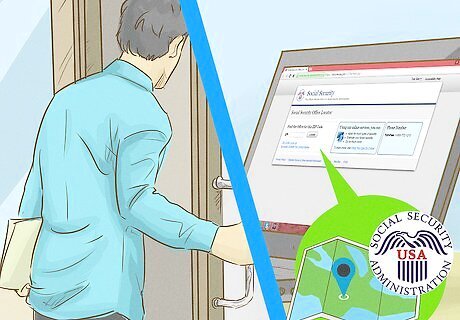 Visit the Social Security office during business hours. For the most part, business hours in Social Security offices are standardized across the country. Social Security offices generally are open on Monday, Tuesday, Thursday, and Friday from 9:00 a.m. until 4:00 p.m., and on Wednesday from 9:00 a.m. until 12:00 noon. Before you go, you may want to visit https://www.ssa.gov/agency/emergency/ to check for emergency closures. Social Security does not publish the direct phone numbers for local offices. You can't make an appointment. You'll typically have a shorter wait time if you go first thing in the morning.