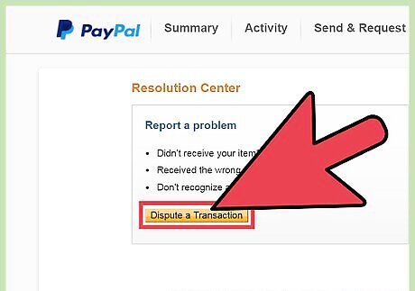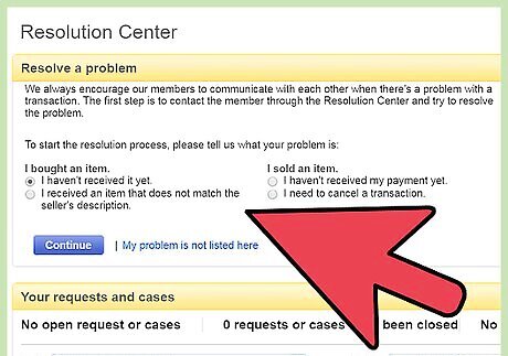 Find the appropriate link. Each online website should have a “Report a Problem” or similar link. After logging into your account, look for this kind of link. On Amazon, you can click “Your Account” and then on “Return or replace items.” It is under the “More Order Actions” heading. On eBay, scroll down to the bottom of the page and click on the “Resolution Center” link. You then can select your problem, e.g., you haven’t received the item or it didn’t match the seller’s description. If you have a different problem, click “My problem is not listed here.” At PayPal, you can log in and be taken to your Summary page. You should look for the link “Resolve a problem in our Resolution Center” on the left-hand side of the page. Click on it.