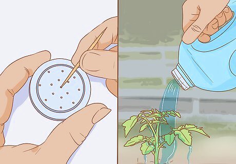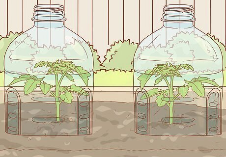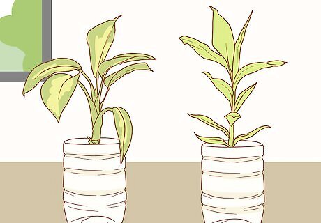 Create a miniature greenhouse for sensitive or tender plants. Some plants benefit from being grown in controlled environments. To make a miniature greenhouse, take any clear plastic bottle and cut it in half. Take the top half (wherever the opening of the bottle is) and place it over the plant. Press it down into the soil so that it doesn’t blow away or fall over. Leave the opening of the bottle open: you want some airflow in your single-plant greenhouse. Make sure that you take the label off of the bottle if there is one. You need sunlight to reach your plant!