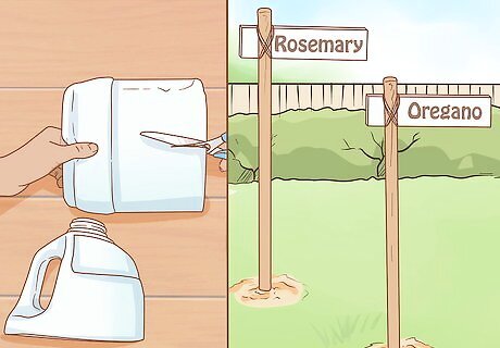 Cut a plastic bottle into small strips to make plant markers. Plant markers are essential to any garden where you have either a variety of plants, or plan on eating anything out of your garden. Luckily, you can make simple plant markers with strips cut out of solid-colored plastic bottles. Use scissors to cut custom-sized strips that end in a point and write the plant’s name at the top of each strip before sticking it inside the soil. You can use a variety of different colored plastics if you want to color code your plants instead of writing on the labels. Just make sure that your marking system is clear enough that it won’t become confusing in the future.