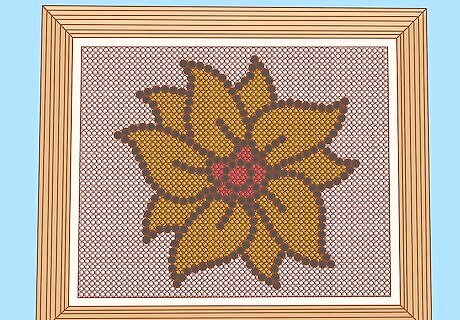 Create mosaic art with bottle caps. Plastic bottle caps can serve as an interesting material to make mosaic art. Start by gathering used bottle caps of different sizes. Then, play around with different patterns by placing them together on a foam board or blank canvas. Once you’ve found an image or pattern that you like, you can glue the bottle caps to your material with hot glue or collage sealer. You may want to put newspaper under your canvas or board so that you don’t make a mess. You can sand down the top of the lids if you’re having trouble keeping them attached to your board or canvas. If you can’t find a lot of different colors, you can always paint the bottle caps yourself!