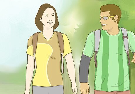 Enjoy a hike. Instead of going to the movies or to the shopping mall, you could go for a hike. Hiking is a free activity that has the additional benefit of ensuring everyone in the family gets some exercise on this busy and often stressful holiday. Look for hikes that are close to your family holiday location and include the family hike in your itinerary. The advantage of hiking over other physical activities is that it does not necessarily require specialized equipment, special skills or fitness levels. In other words, as long as one is able bodied, one can probably enjoy a short walk or hike in the woods. If there are people with disabilities in your group, you should look for a path that meets their mobility needs. Specialized hiking equipment is available such as walking poles and hiking shoes, but this equipment is not necessary for a short, easy Thanksgiving Day hike.