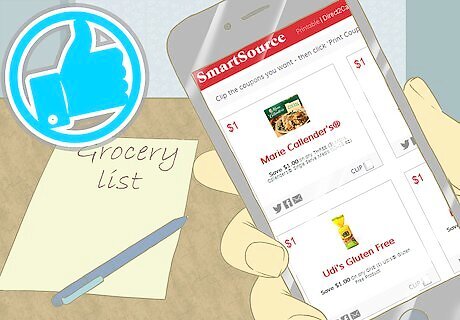 Make smart shopping decisions. Once you have determined your budget, you should spend your money wisely. Start by choosing the cheapest grocery store in your area, which you can determine by comparing prices for products like milk, eggs, canned goods, and meat. You should also compare prices on Thanksgiving products such as cranberry sauce. Once you have determined the cheapest grocery store, you can download coupons, buy generic canned goods, and sale items. You can find coupons at online coupon hubs as Coupons.com and Smartsource.com. You can try checking out your own groceries. If you have to check out your own groceries, you may be less likely to purchase frivolous products. Bring a grocery list and shop alone. If you shop alone, you are less likely to make impulse purchases. Typically, impulse purchases happen when people shop together and there is a lack of coordination between shoppers. You may also want to learn more general tips for saving on grocery expenses.