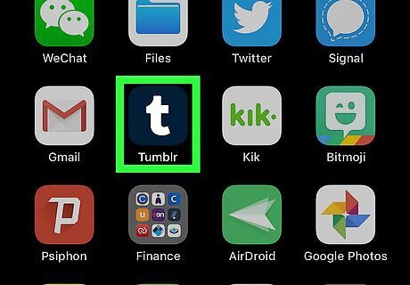 Open the Tumblr app on your iPhone or iPad. The Tumblr app looks like a white "t" icon in a dark blue square. If you're not automatically signed in, tap the Log in button at the bottom, enter your email address, tap Continue, and sign in with your password.